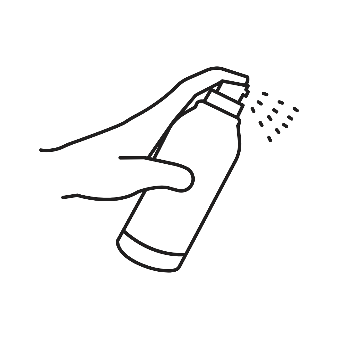 Sembur secara sekata pada kawasan berbulu yang diingini (kawasan badan sahaja), jarak 10–15cm dari kulit.